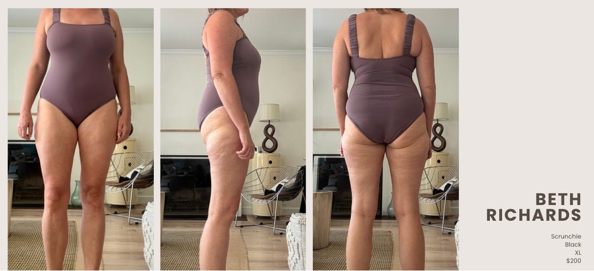 The Boheme was the most versatile, with removable straps and a wrap detail you can wear a few ways. The Scrunchie had the most flair — textured straps and a muted, artsy color I loved. The Scoop offered more coverage up front, but still brought drama in the back.