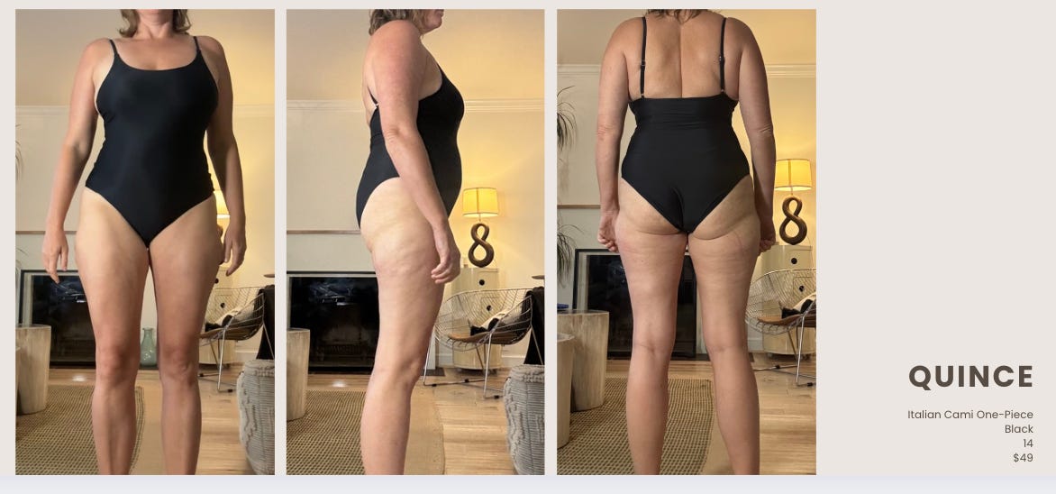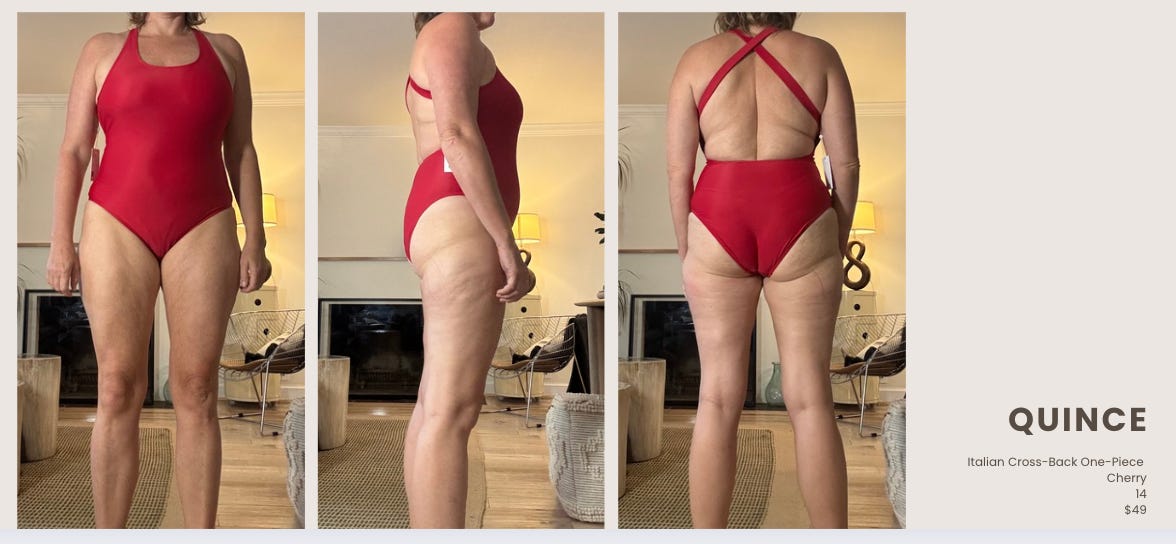 Quince suits look very familiar — because they are. The brand’s whole model is to reverse-engineer popular designs and sell them for less, which is why their swim line reads like a greatest hits of higher-end brands. The result? Pretty good suits at much lower prices. But it’s worth asking how you feel about wearing something that was likely copied down to the seam.